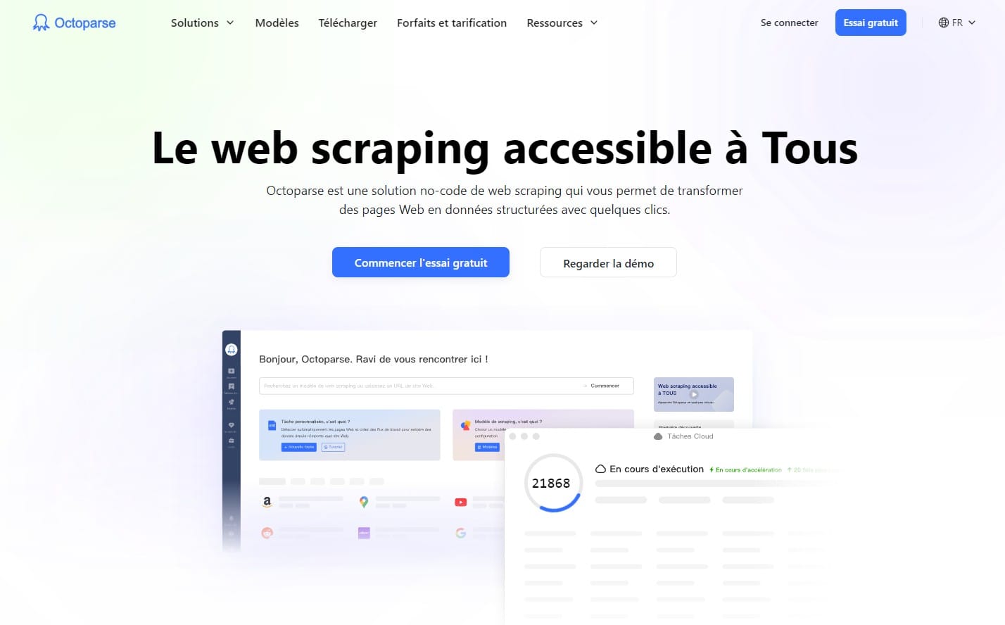 Octoparse is a non-coding web scraping tool that enables one to pull out data easily with no coding at all. It is ideal for extracting job postings or any other form of structured job data by just a few clicks. It can handle more complex tasks like dynamic content scraping, proxy management and job posting data collection, making it an excellent choice to scrape job postings efficiently.