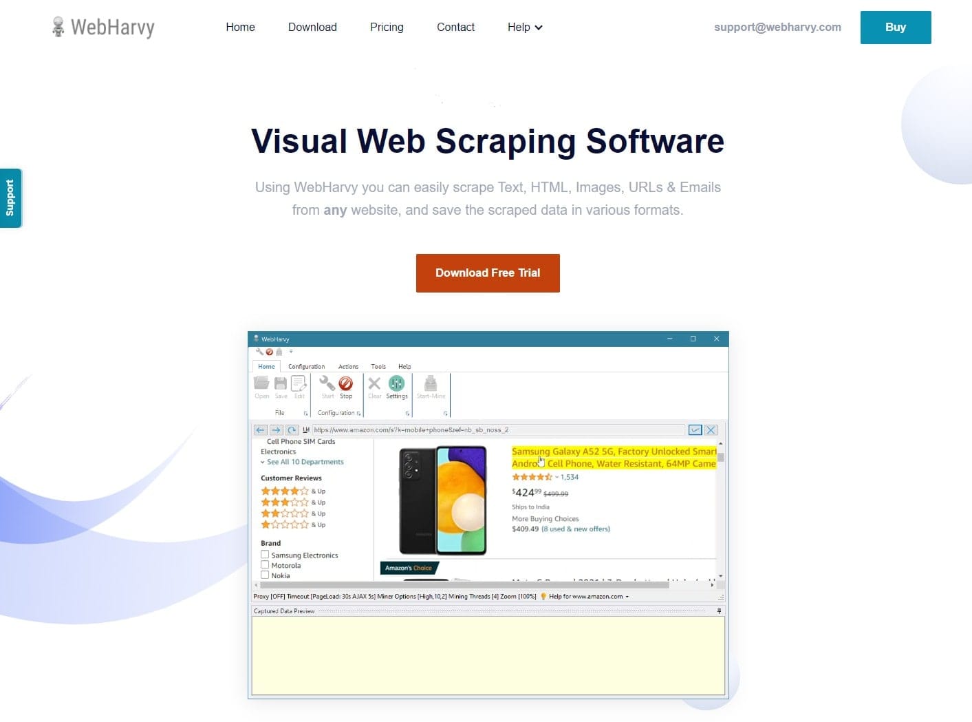 WebHarvy is a no-code, user-friendly job board scraper that will enable easy extraction of job postings and company information, among other data, without much hassle. Its customizable templates will make extracting structured data all easier, with even minimal setup!