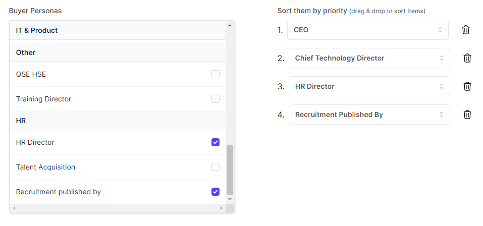 Here we've selected several types of profile: CEO, Sales director, HR director, and the person who published the job offer.