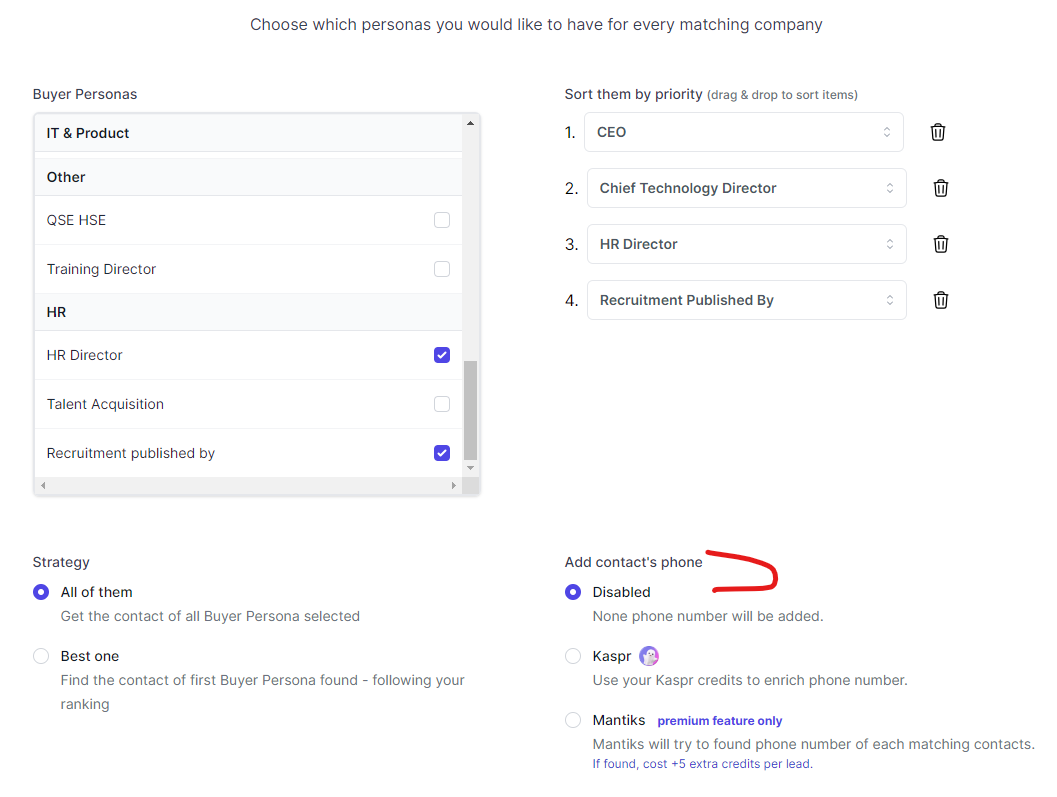 If it's relevant to you, you can also find the direct phone number of your prospect with Mantiks, by selecting the enrichment you want: