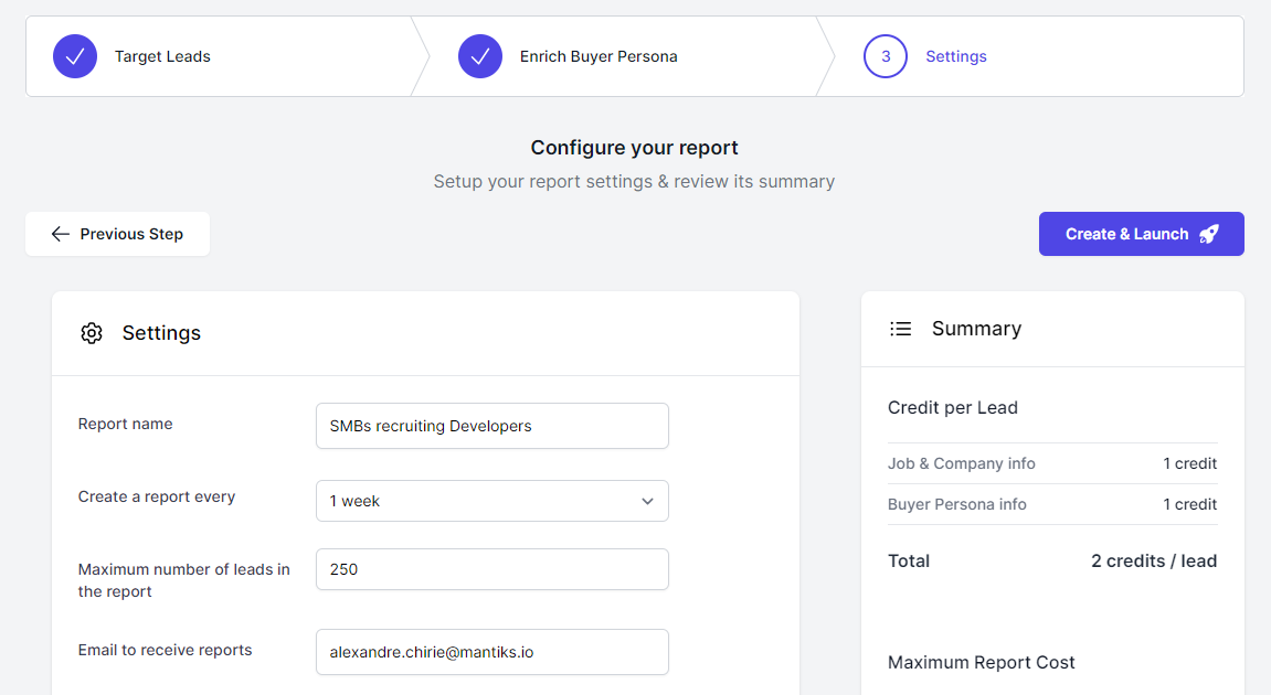 Mantiks aims to make the process of scraping job offers and identifying the right decision-maker as simple and fast as possible, with just a few clicks.