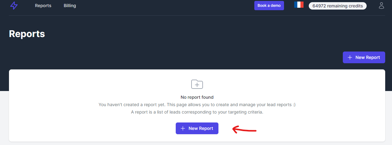 Once you've logged in, you'll be taken to the report creation page. Simply click on "Create a new report".