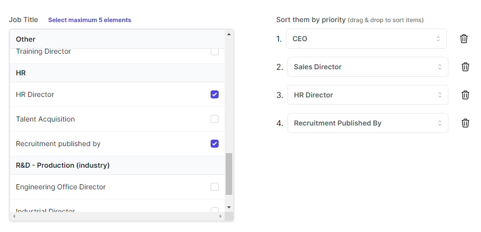 Here we've selected several types of profile: CEO, Sales director, HR director, and the person who published the job offer.