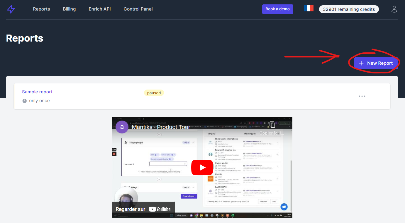 Finally to extract this data on a excel or csv file, you have to launch a report by choosing if you want to enrich the company and jobs found with decision makers contact details (not mandatory).