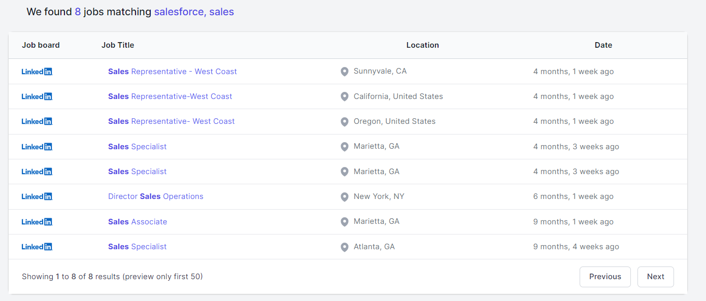 Using Mantiks search engine, you will be able to access expired job postings from several years of historical data, based on a job title, location or even keywords to match in the job description.