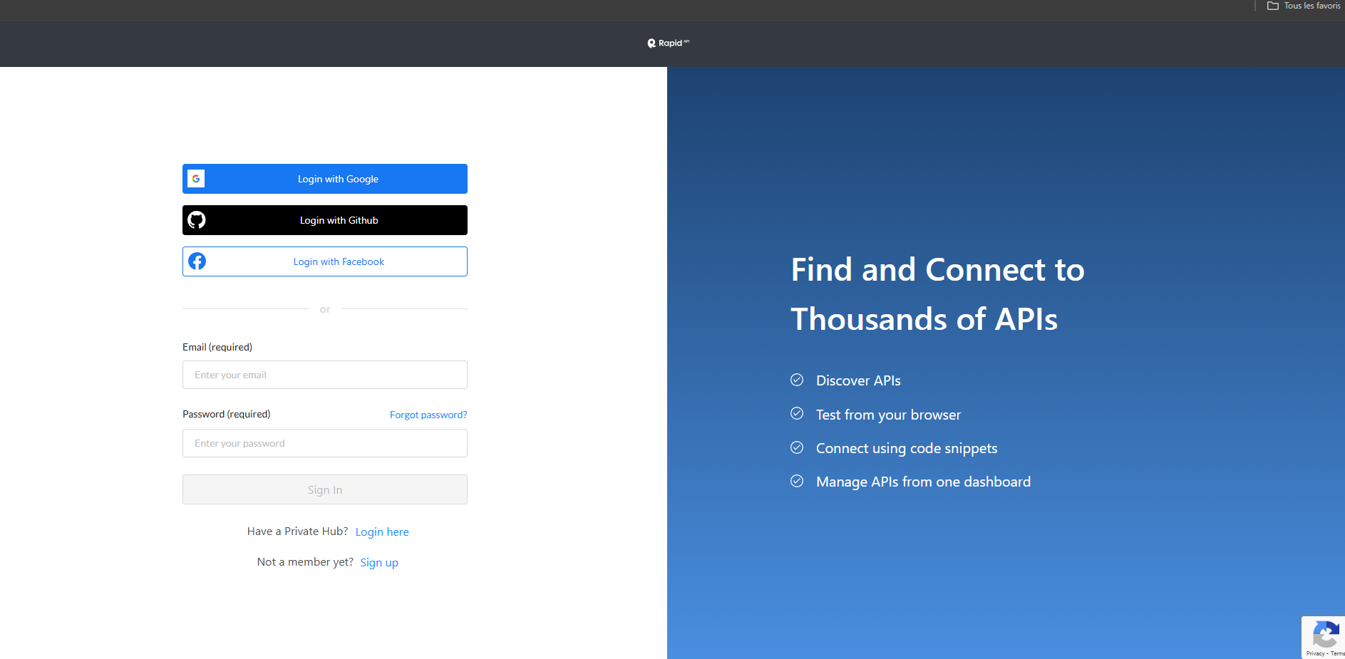 - Sign Up / Login: New to RapidAPI? Click "Sign Up."