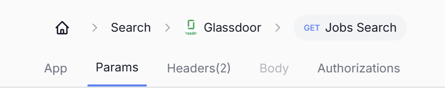 - Open the "Params" Tab: Once Job Search has been selected, under that, click on "Params" tab to set up different search parameters.