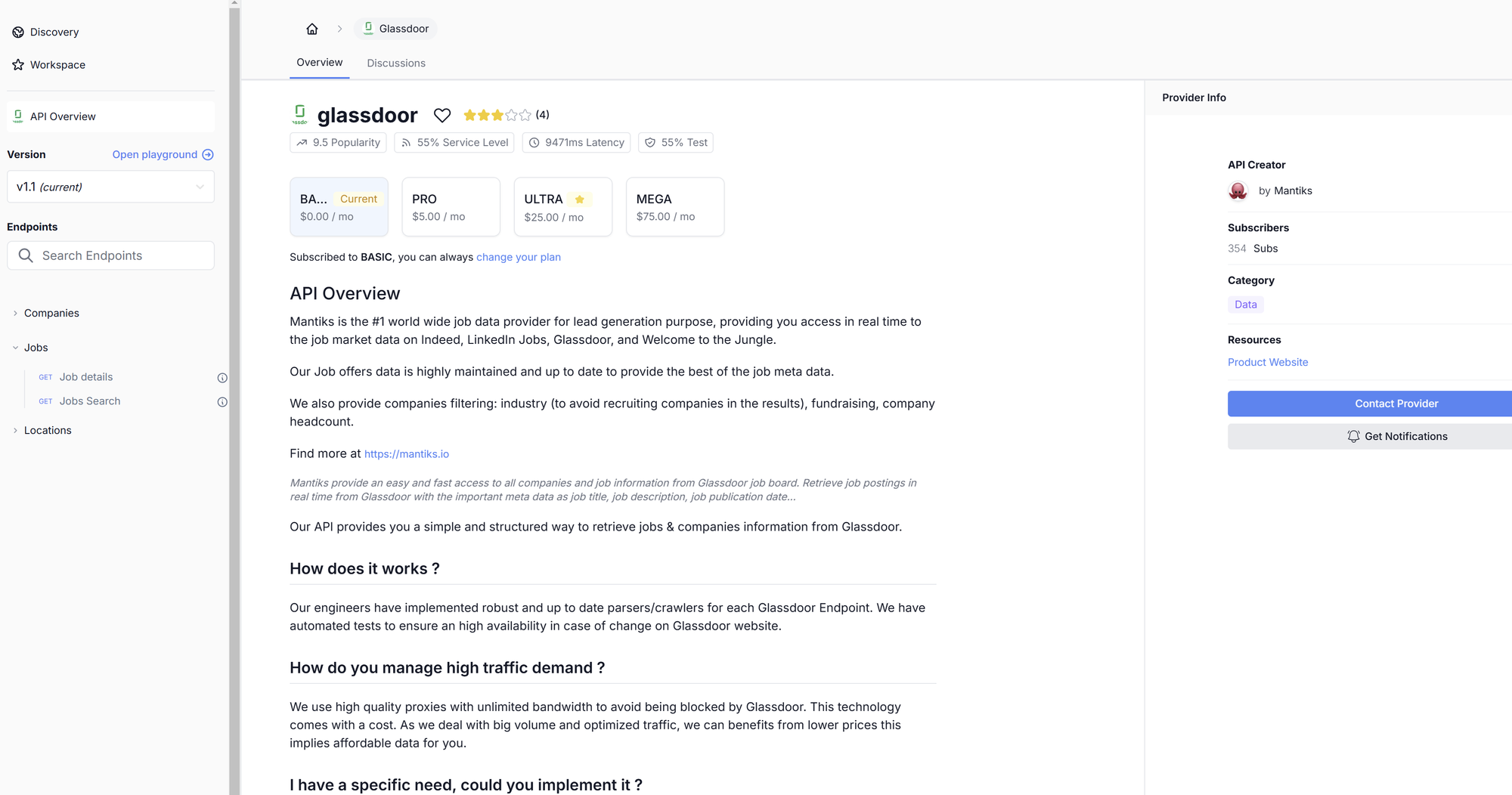 We will be using the free Mantiks API on RapidAPI to scrape salary data on Glassdoor that includes job titles, company names, salaries, and required skills.